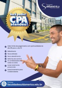 A Comissão Própria de Avaliação (CPA) da FACULDADE SULDAMÉRICA, atende ao que preceitua a Lei n° 10.861, de 14 de abril de 2004, que institui o Sistema Nacional de Avaliação da Educação Superior (SINAES), constitui-se em órgão permanente de coordenação do processo de auto avaliação da IES.